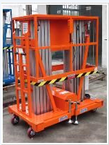 铝合金升降机种类很多剪叉式、套缸式、多柱式、曲臂式升降机(折臂式的更新换代)、链条式升降机(电梯、货梯)等等不同的种类,最适合与户外的铝合金升降机就是套缸式,他的安全系数非常高,而且提升的高度不会很高,底部的重量轻,所以套缸式铝合金升降机是户外操作最主要的物流设备。